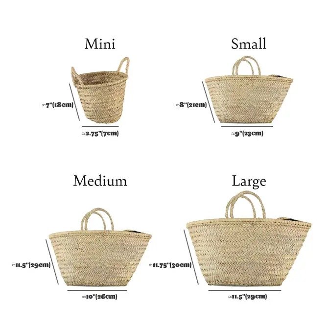 This basket is available in all colors and three sizes, making it versatile for both decorative and practical uses such as shopping or storage.